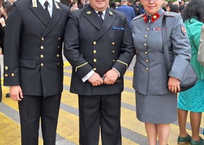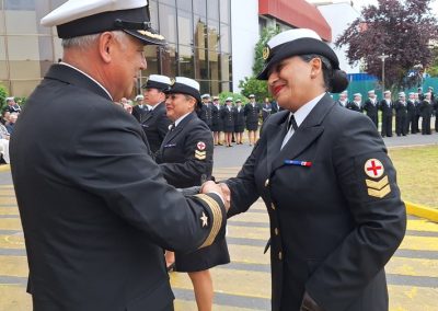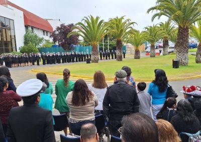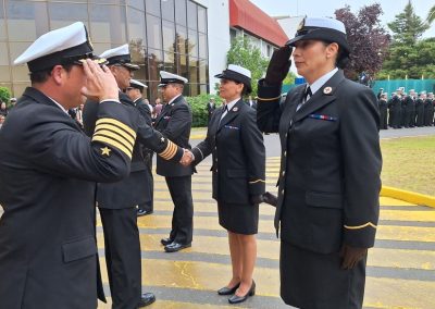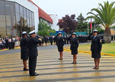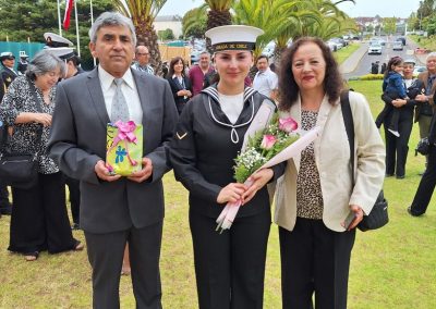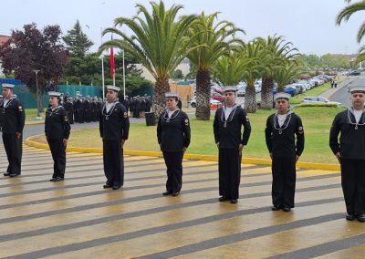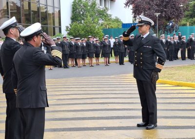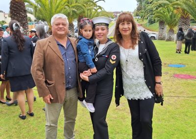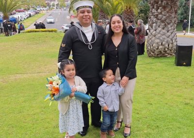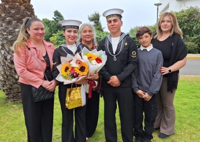 Asimismo, dedicó un especial reconocimiento a las familias, señalando que su permanente apoyo, cuidado y contención constituyen un pilar fundamental para que puedan avanzar con éxito en el camino profesional que la Armada les ha trazado, subrayando el rol clave que cumplen en cada etapa de la carrera naval “…no puede quedar fuera el permanente apoyo de las familias, quienes han estado siempre presentes en este proceso de crecimiento… esa desinteresada compañía ha permitido contar con el aliento para continuar venciendo todas las barreras que el estricto rigor en el cumplimiento de nuestro deber ha demandado…entonces es momento propicio de agradecer a aquella madre, padre, marido, señora, pareja e hijos que han sido testigos del sacrificio que a diario se realiza para cumplir cabalmente con todas sus obligaciones, las que les han permitido obtener las calificaciones necesarias para ascender al grado superior y estar formados junto a nosotros el día de hoy”.