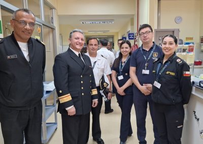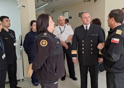 Posteriormente, el Director de Sanidad, CA SN Christian Werner junto al equipo directivo del hospital, dio inicio a la revista técnica en distintas dependencias, recorriendo el zócalo, áreas de habitabilidad, Unidad de Cuidados Intensivos, bodegas, oficinas administrativas, central de alimentación y comedores, entre otros.