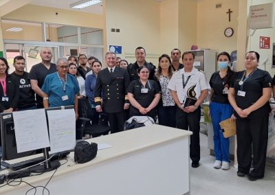 También, el Comandante Clavel realizó una presentación institucional, en la que expuso los principales proyectos en desarrollo, logros alcanzados y metas estratégicas, reafirmando el compromiso del establecimiento con la excelencia, la mejora continua y el bienestar del personal de Sanidad Naval.