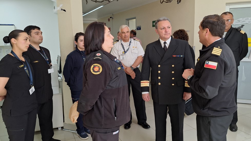 Posteriormente, el Director de Sanidad, CA SN Christian Werner junto al equipo directivo del hospital, dio inicio a la revista técnica en distintas dependencias, recorriendo el zócalo, áreas de habitabilidad, Unidad de Cuidados Intensivos, bodegas, oficinas administrativas, central de alimentación y comedores, entre otros.